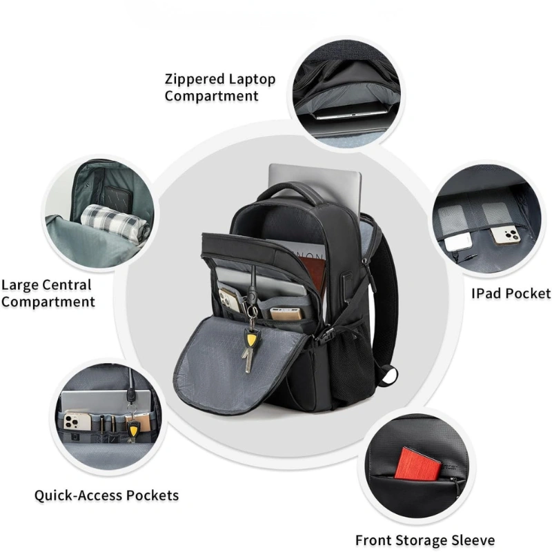 - Anti-Theft Design: Hidden back pockets, lockable zippers, and reinforced stitching ensure security.